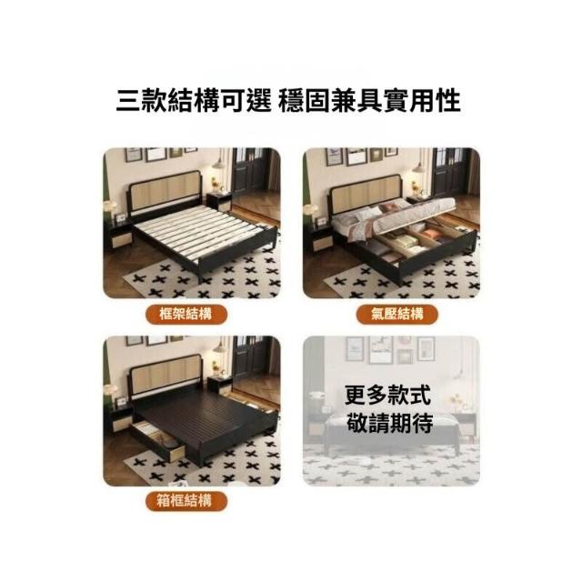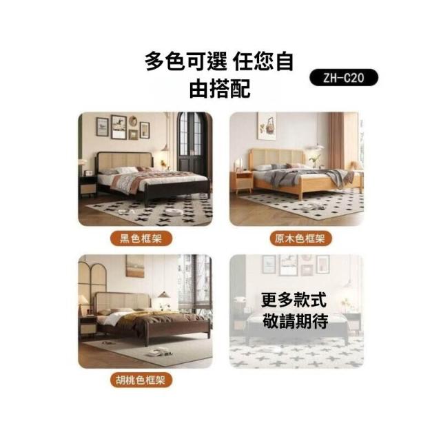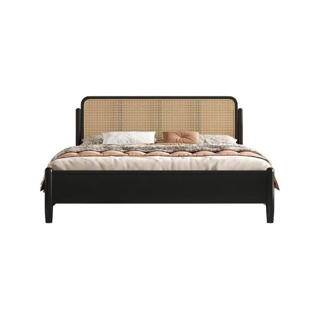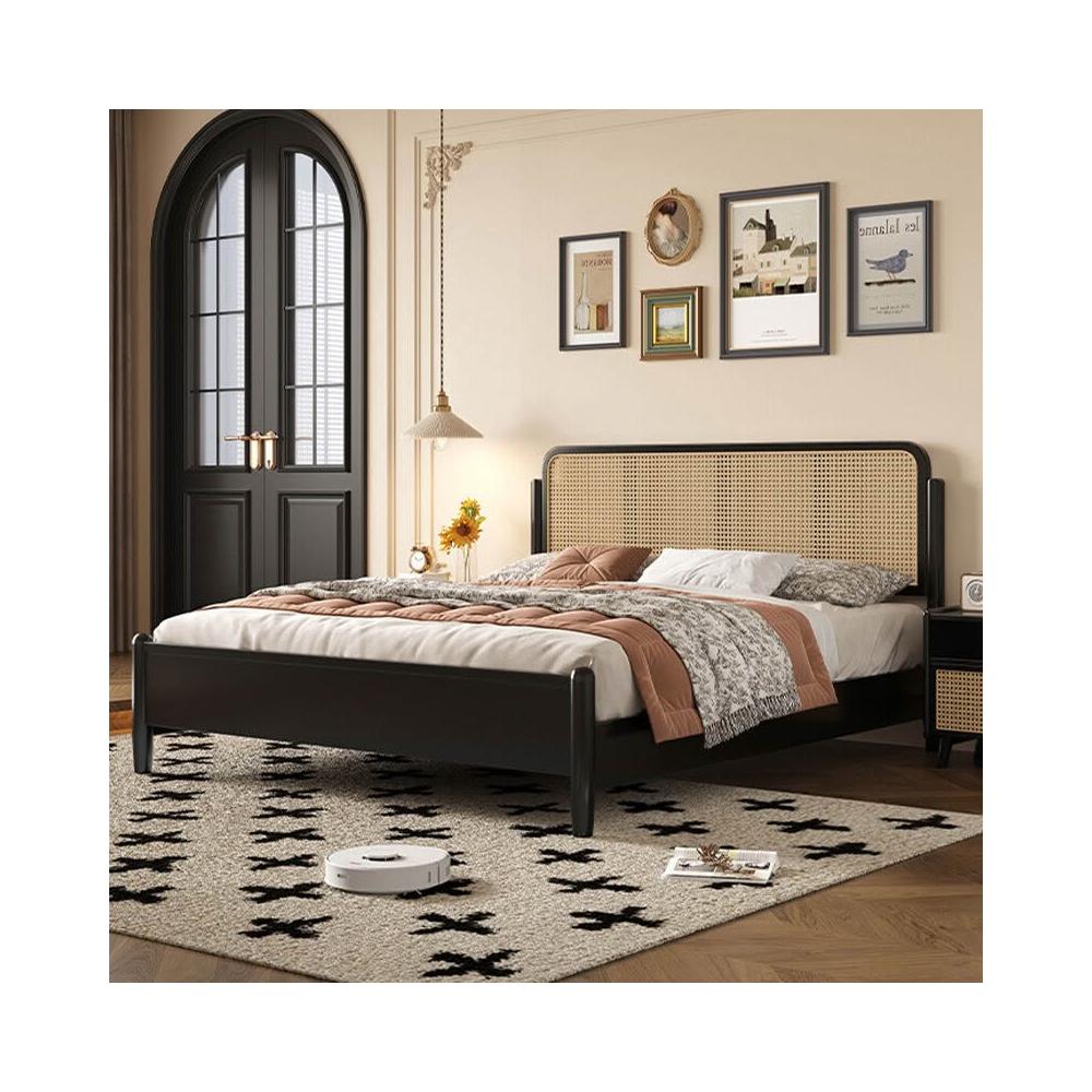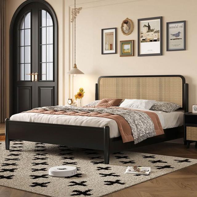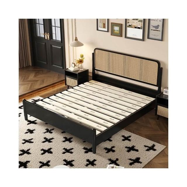 法式 中古風 實木床 雙人主臥 藤編床 高級臥室 黑色 簡約美式 復古風 大床