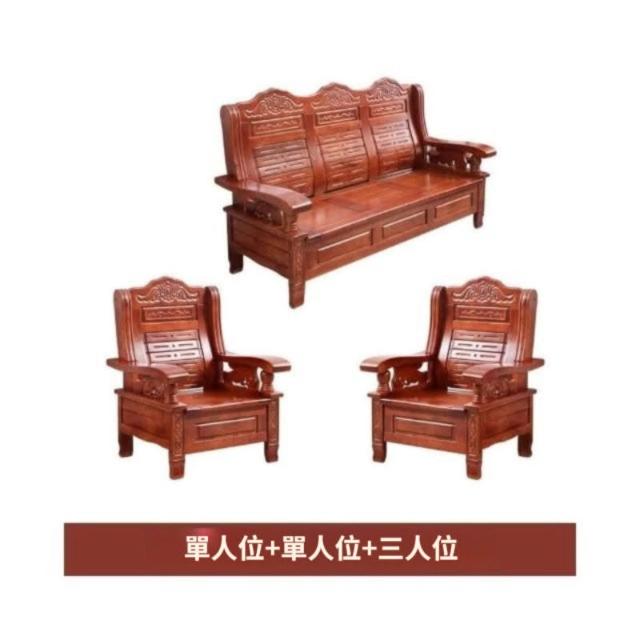 實木 沙發 客廳茶幾組合 中式小戶型 家用木質 單雙三人位 涼椅中式家具