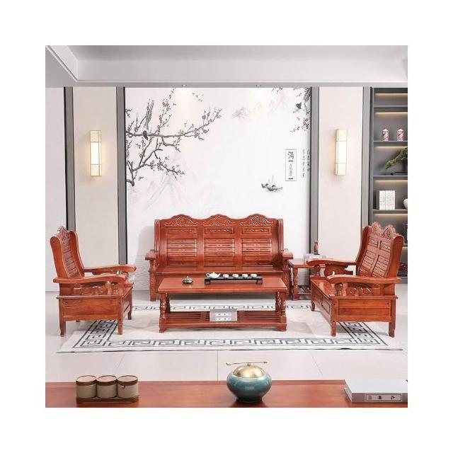 實木 沙發 客廳茶幾組合 中式小戶型 家用木質 單雙三人位 涼椅中式家具