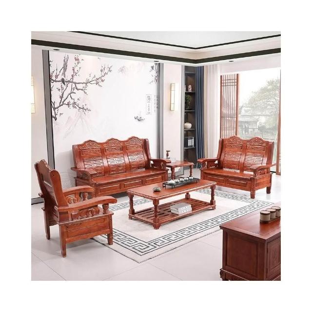 實木 沙發 客廳茶幾組合 中式小戶型 家用木質 單雙三人位 涼椅中式家具