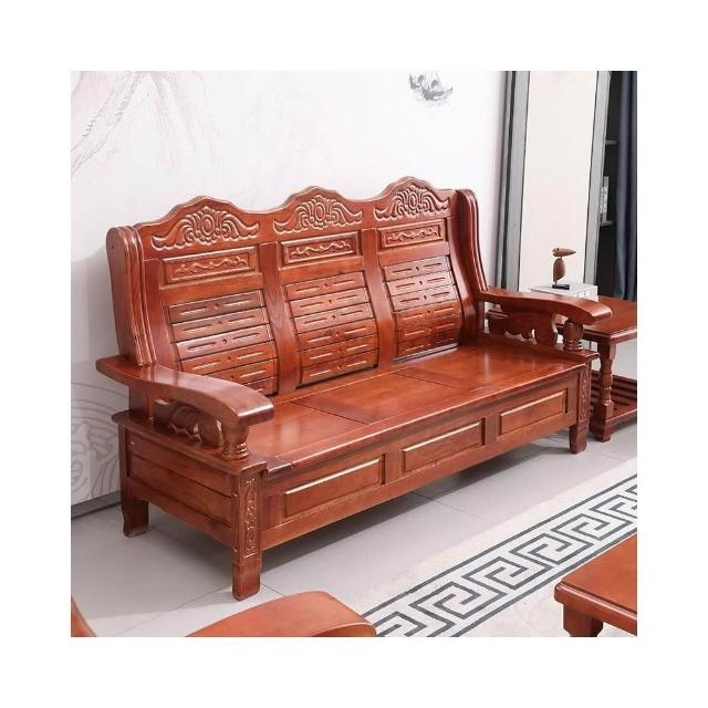 實木 沙發 客廳茶幾組合 中式小戶型 家用木質 單雙三人位 涼椅中式家具