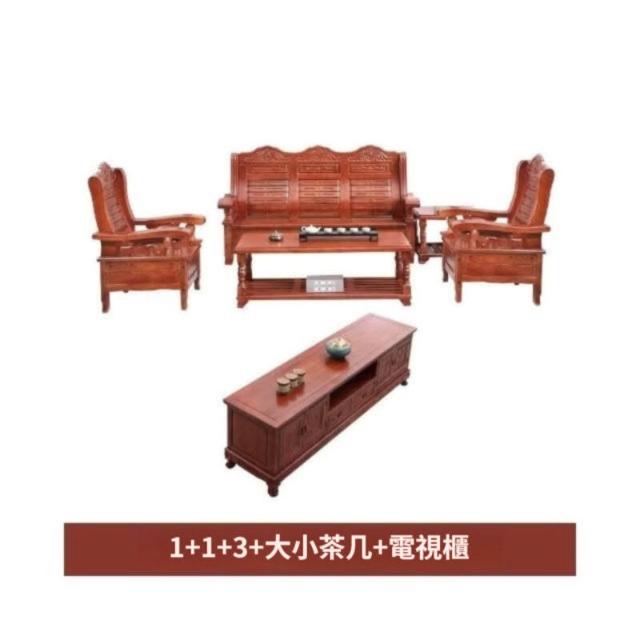 實木 沙發 客廳茶幾組合 中式小戶型 家用木質 單雙三人位 涼椅中式家具