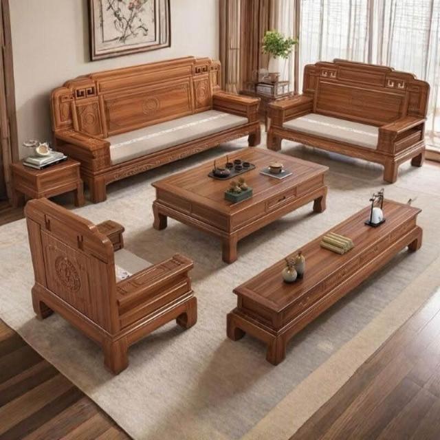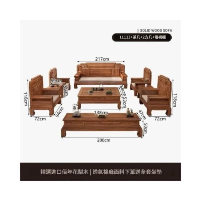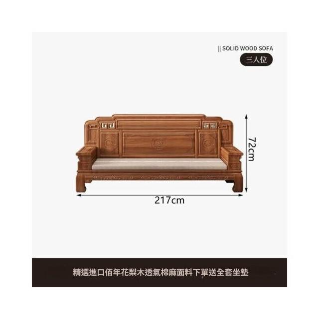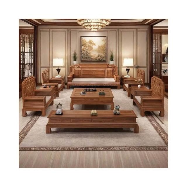 中式金花梨木實木沙發組合仿古典雕花冬夏兩用小戶型客廳組合沙發