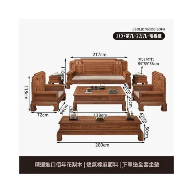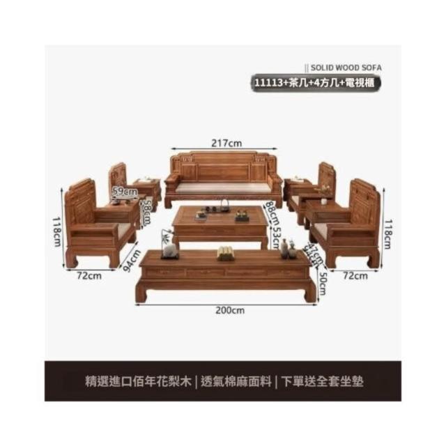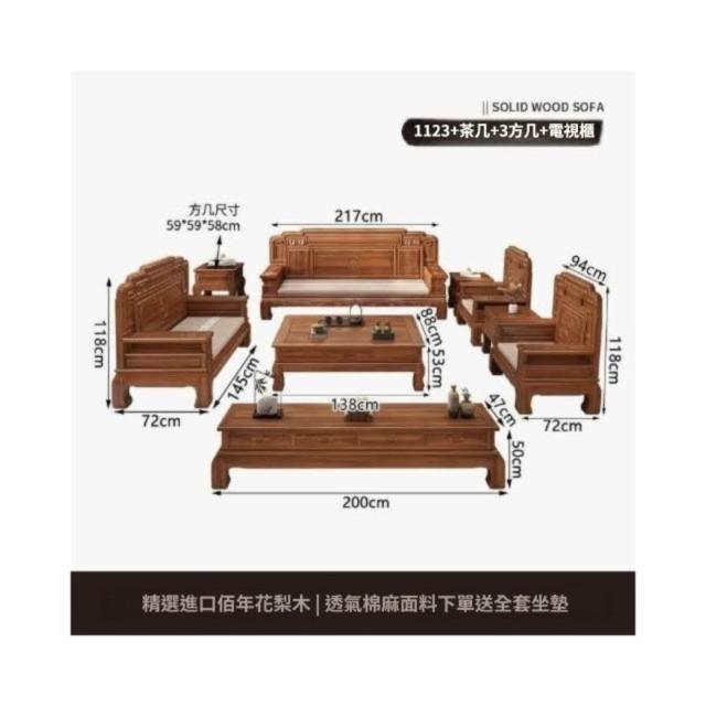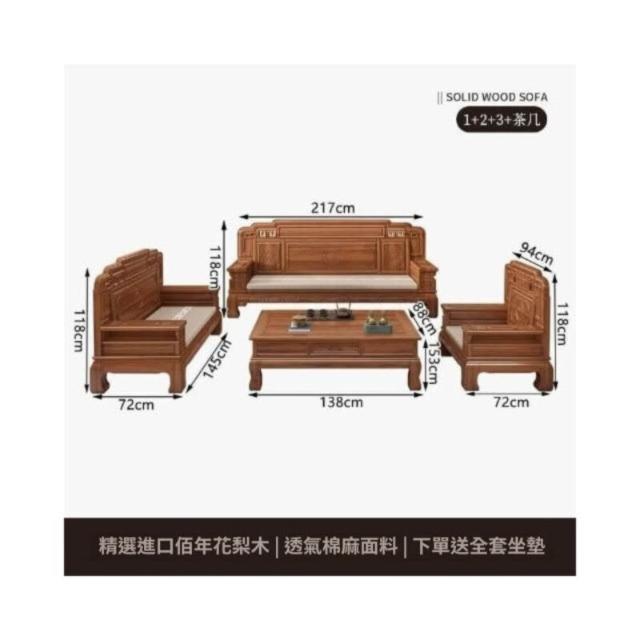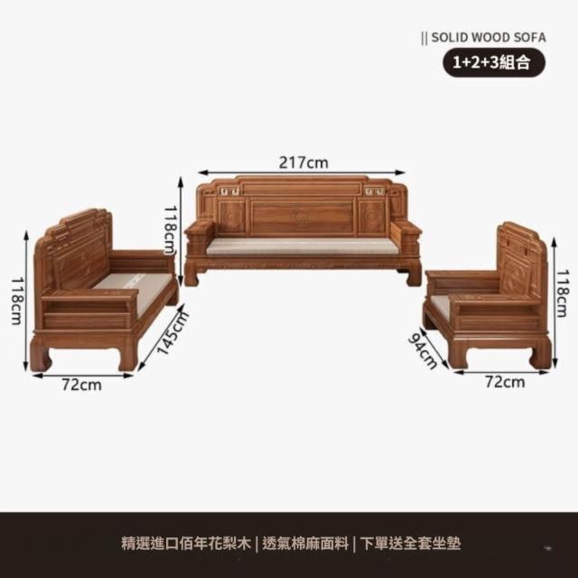 中式金花梨木實木沙發組合仿古典雕花冬夏兩用小戶型客廳組合沙發