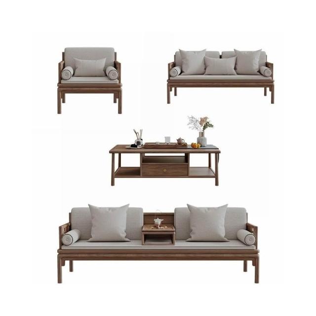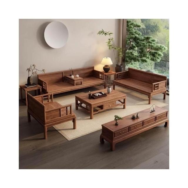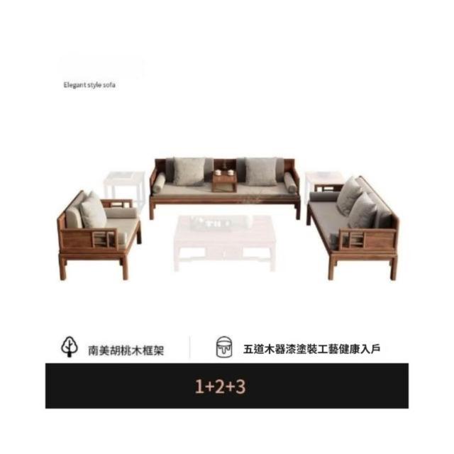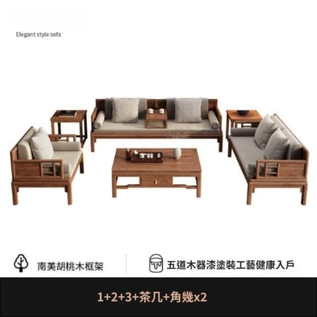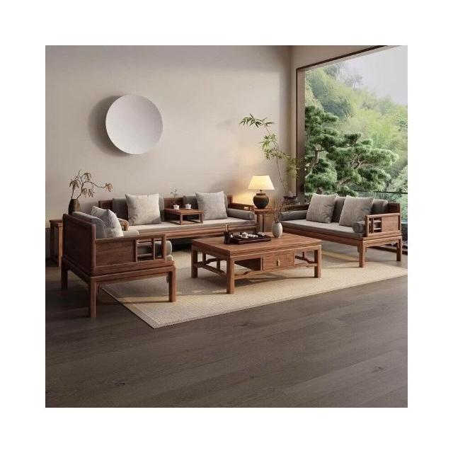 中式 新中式 實木沙發 組合 禅意 黑胡桃木 現代別墅 客廳 家具