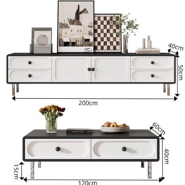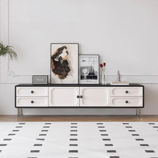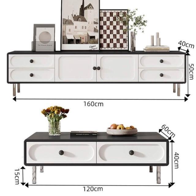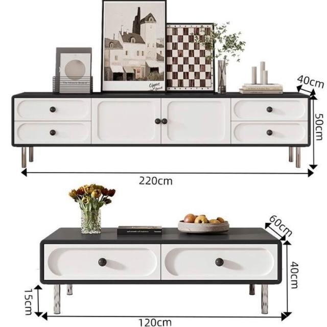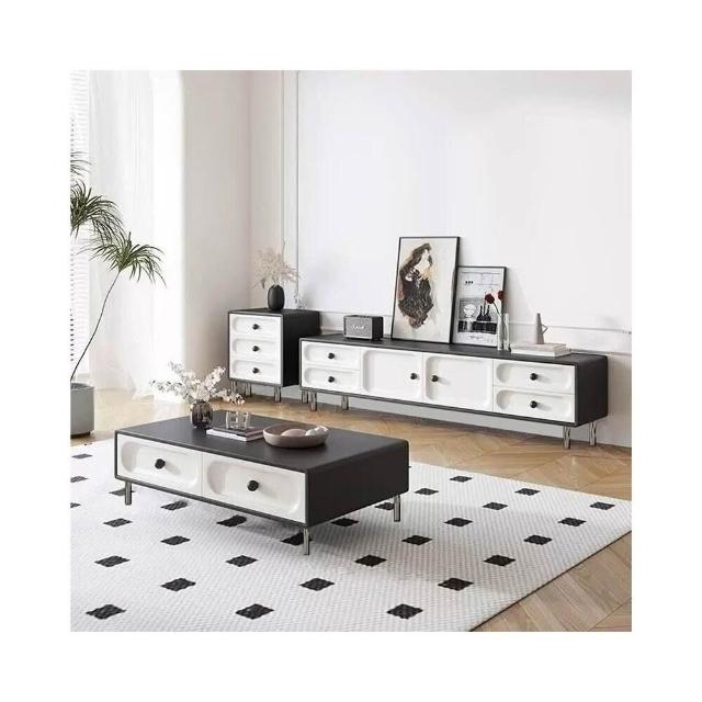 中式 奶油風 電視櫃 中古風 黑白電視櫃 茶幾組合 網紅地櫃 客廳家用