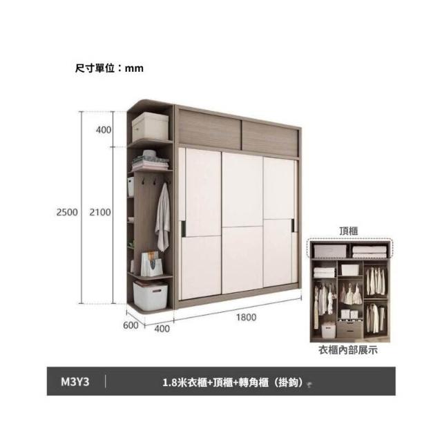 臥室衣櫃 現代簡約 板式組合衣櫃 二門三門滑門 大衣櫥 推拉門衣櫃