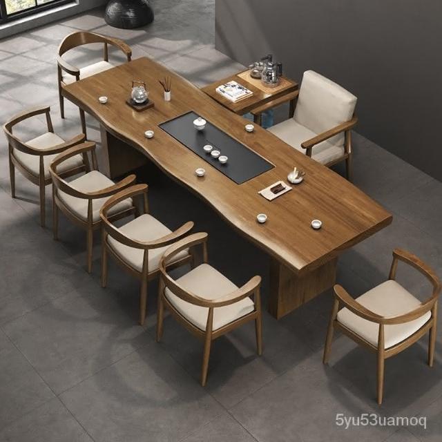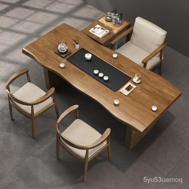 廠傢直銷 實木大闆茶桌椅組閤功夫泡茶桌辦公室茶臺全套禪意茶幾茶室書桌子