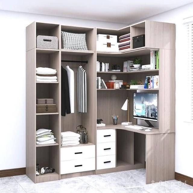 免運到府 可開統編 bl轉角連體書桌衣櫃一體式小戶型家用臥室電腦桌拐角衣櫥收納櫃組
