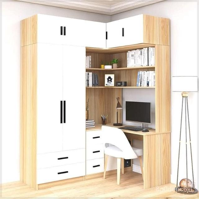 免運到府 可開統編 bl轉角連體書桌衣櫃一體式小戶型家用臥室電腦桌拐角衣櫥收納櫃組