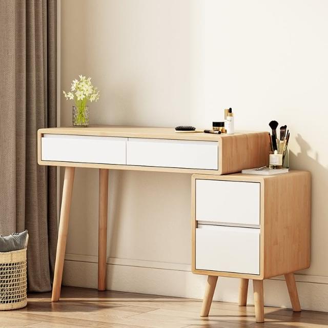 免運 奶油風實木梳妝台化妝桌大鏡輕奢燈化妝台卧室現代簡約一體收納櫃