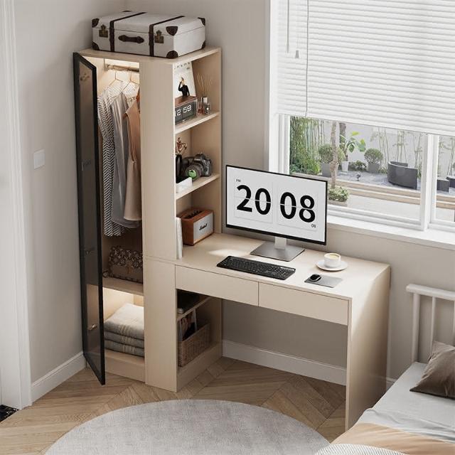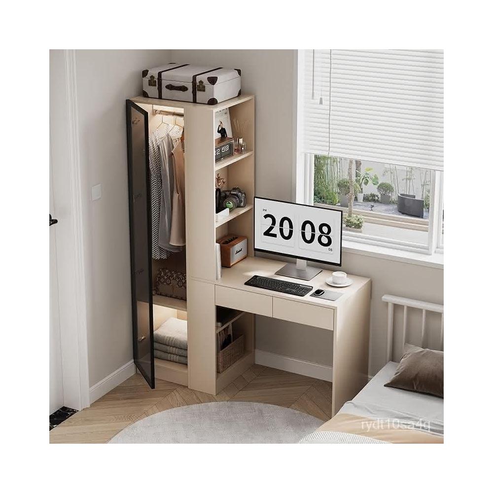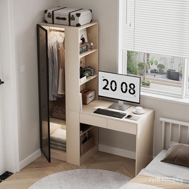 廠傢直銷 免稅 簡易衣櫃書桌一體傢用臥室小房間定製一半書櫃一半衣櫃簡約奶油風