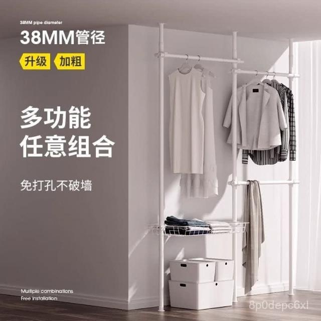 爆款 免運 頂天立地衣架金屬衣櫃簡易衣櫃家用加厚衣帽間免打孔臥室落地衣櫃