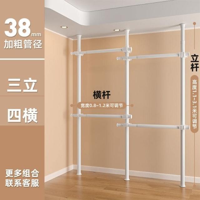 爆款 免運 頂天立地衣架金屬衣櫃簡易衣櫃家用加厚衣帽間免打孔臥室落地衣櫃