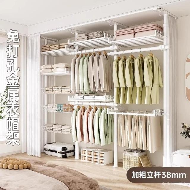 爆款 免運 頂天立地衣架金屬衣櫃簡易衣櫃家用加厚衣帽間免打孔臥室落地衣櫃