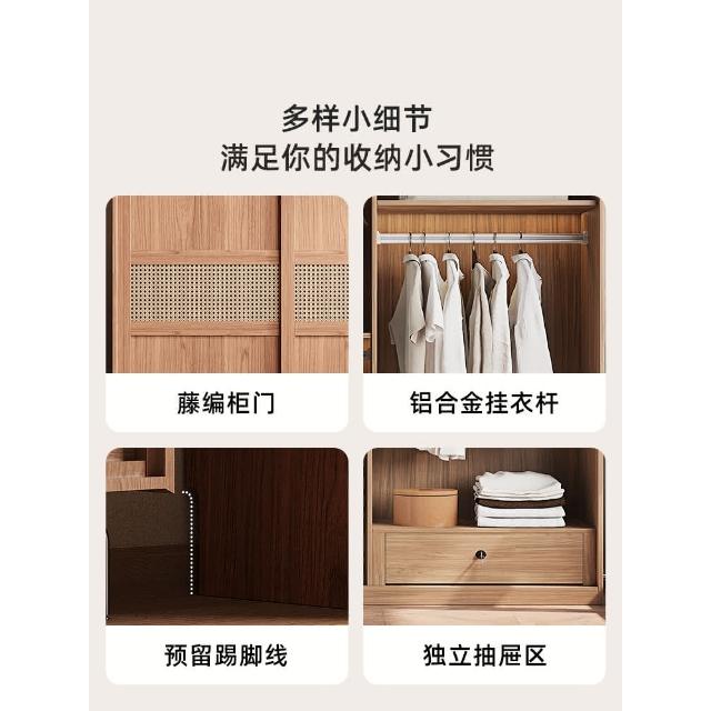 藤編中古風推拉門衣櫃小戶型家用臥室儲物櫃北歐滑移門成品大衣櫥