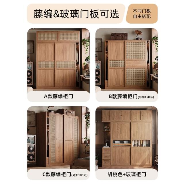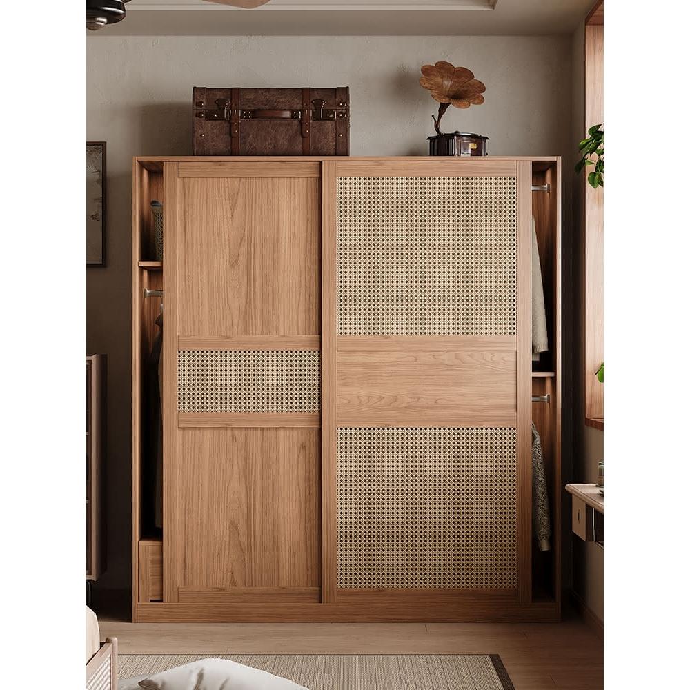 藤編中古風推拉門衣櫃小戶型家用臥室儲物櫃北歐滑移門成品大衣櫥