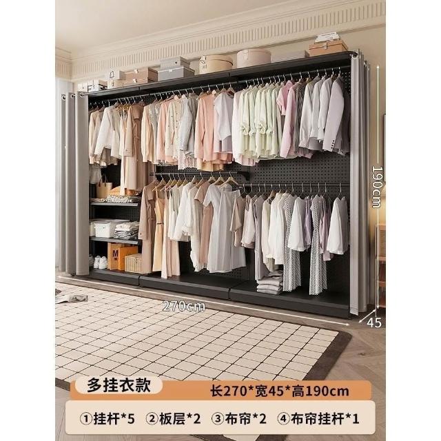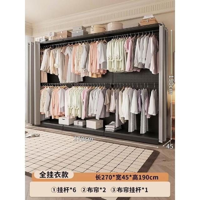 免運 可代客組裝 洞洞板簡易衣櫃 臥室家用組裝金屬衣櫥 出租房用開放式防塵簾掛衣架