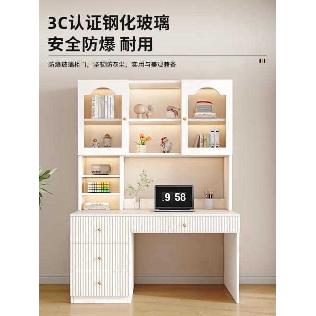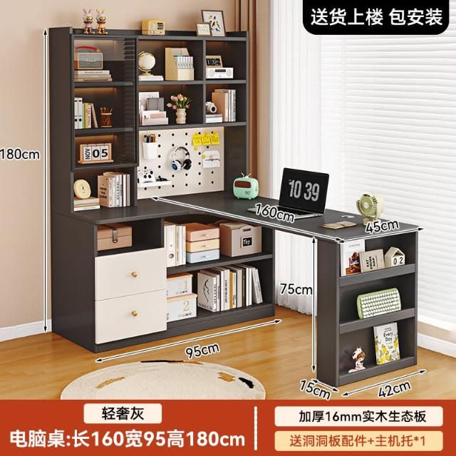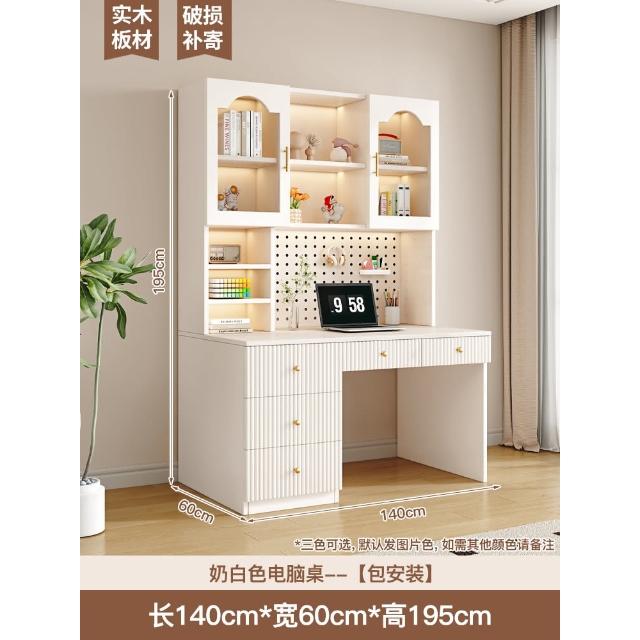 雙人書桌書架一體桌組合實木家用臺式電腦桌輕奢辦公桌學生寫字桌