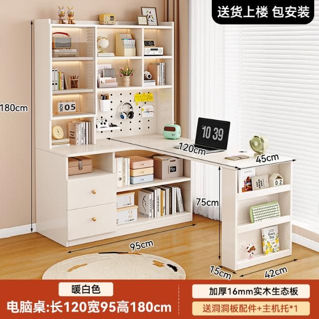 雙人書桌書架一體桌組合實木家用臺式電腦桌輕奢辦公桌學生寫字桌