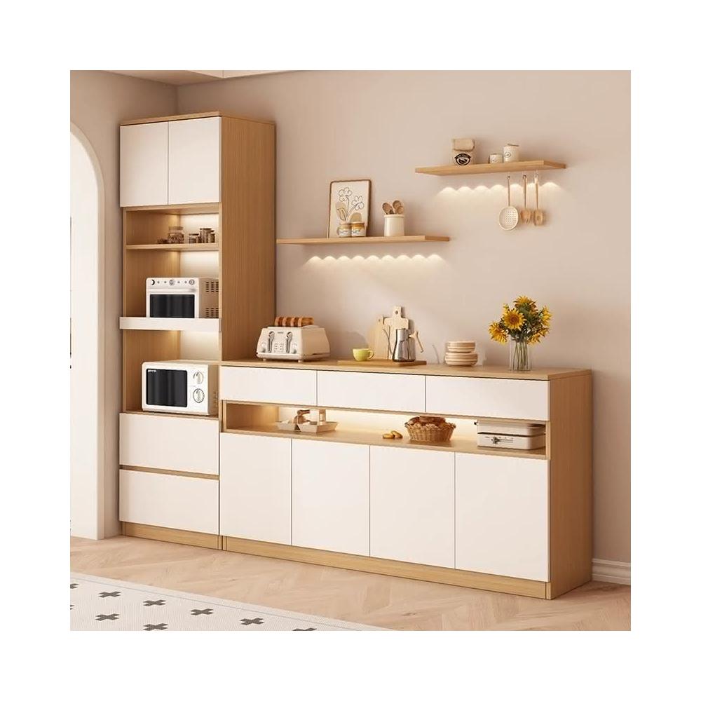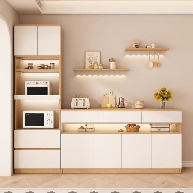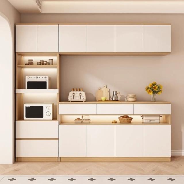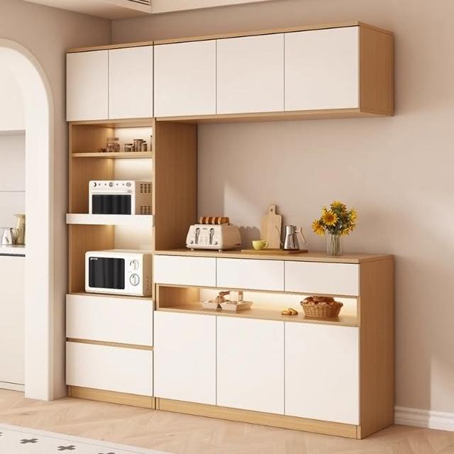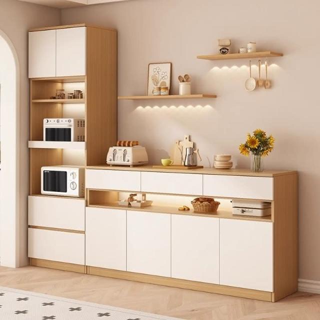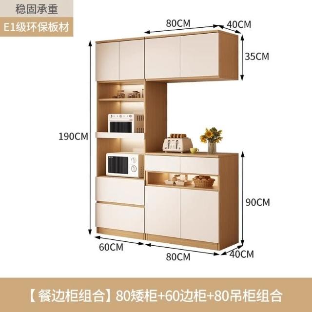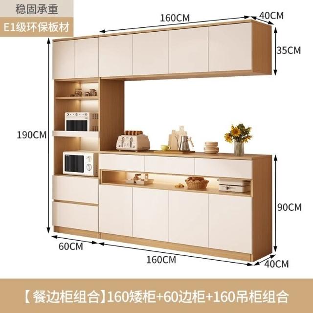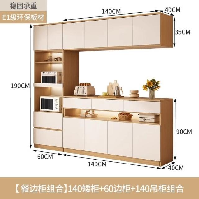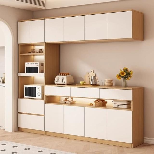 陽漫原木奶油風餐邊櫃吊櫃靠牆一體廚房客廳現代簡約置物架酒櫃