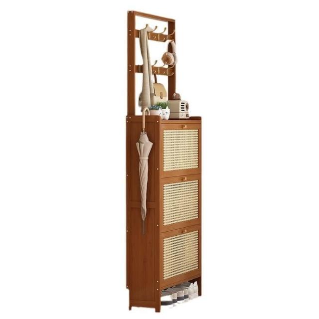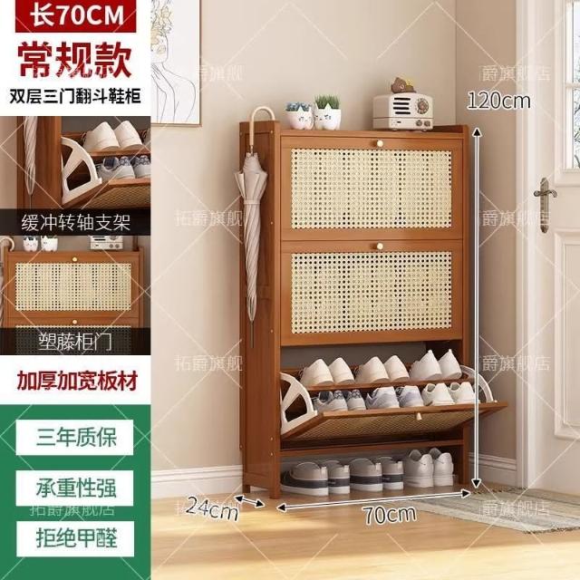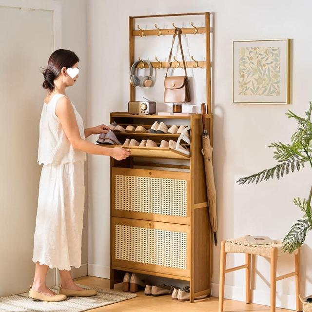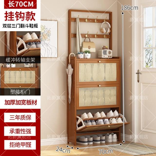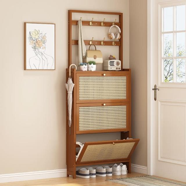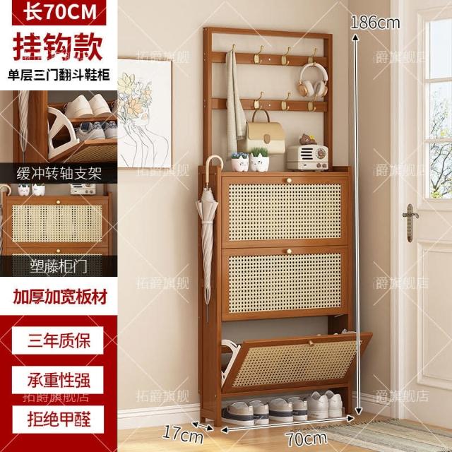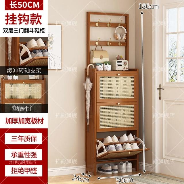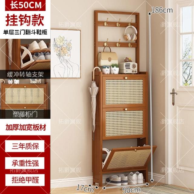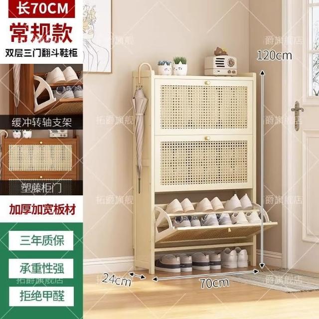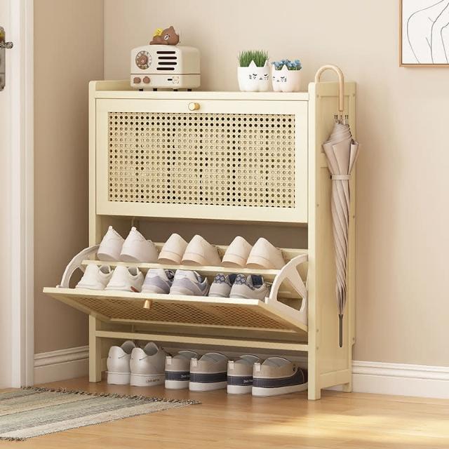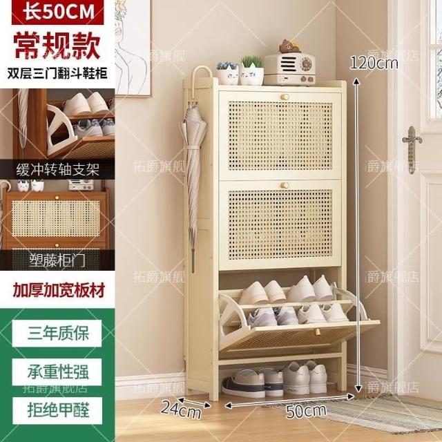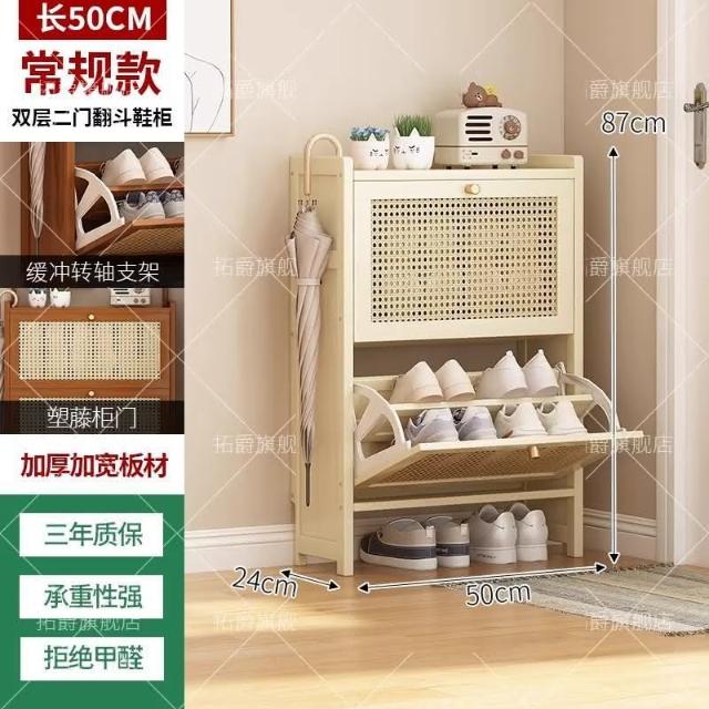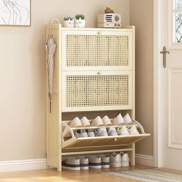 奶油風鞋櫃超薄翻鬥鞋櫃帶掛架家用門口入戶玄關一體收納鞋架