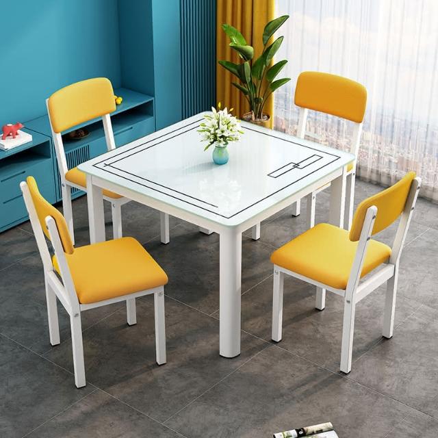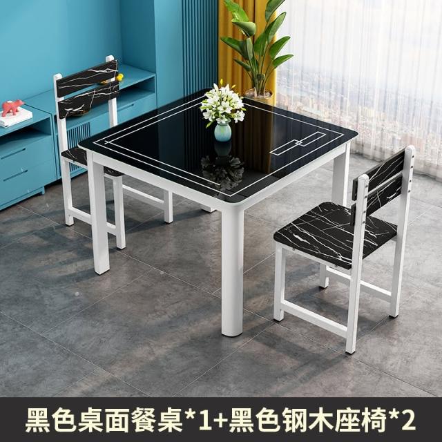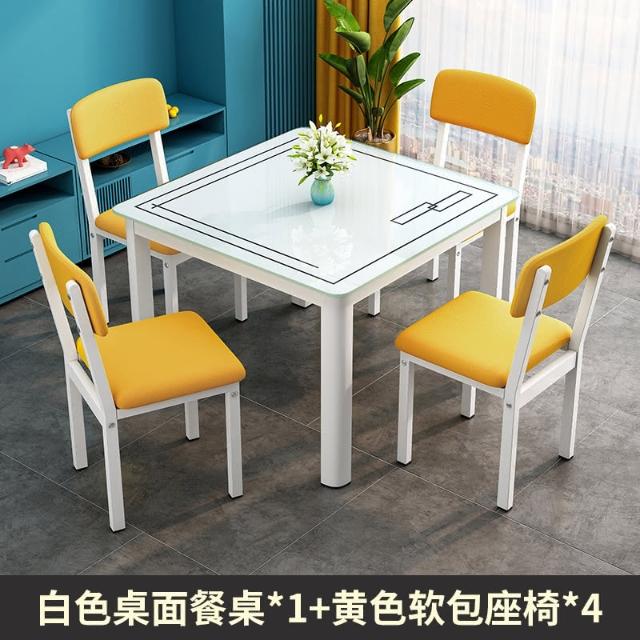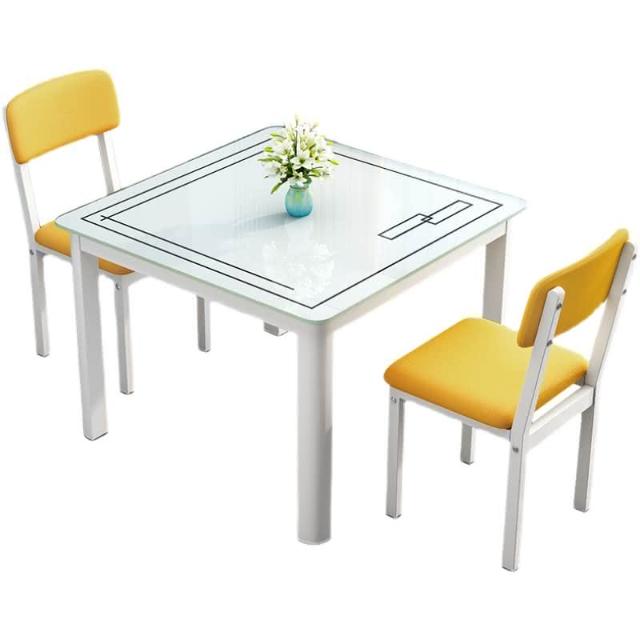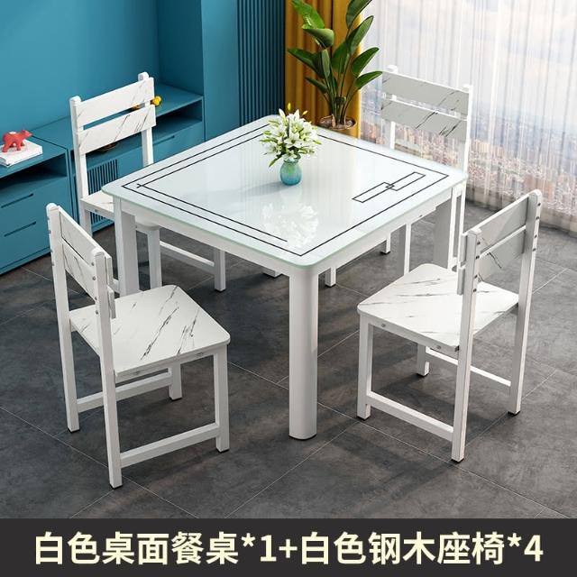 8V鋼化玻璃餐桌簡約正方形家用吃飯四方桌子速食店小戶型餐桌椅組