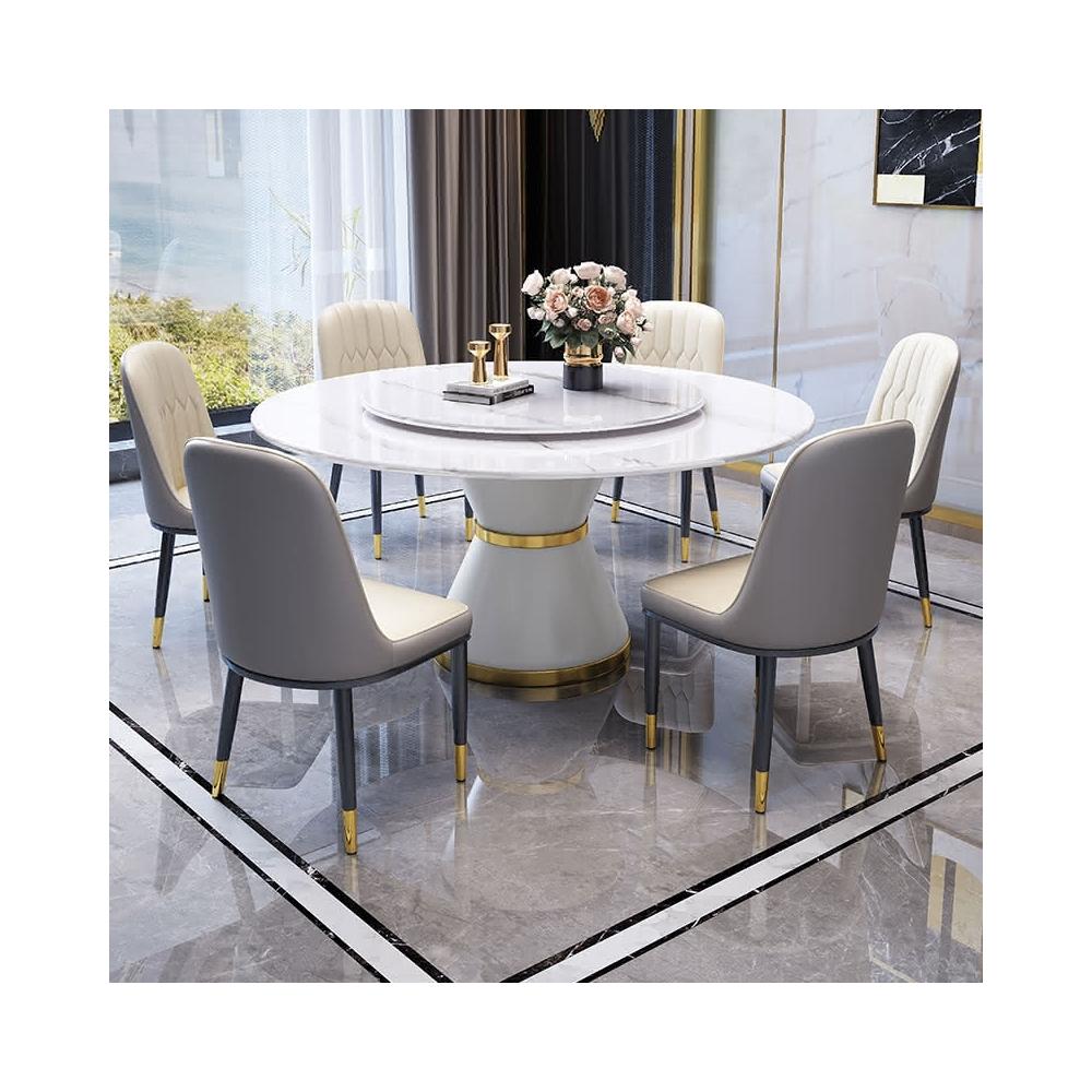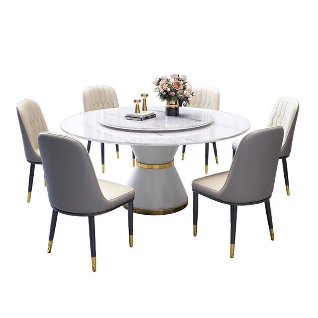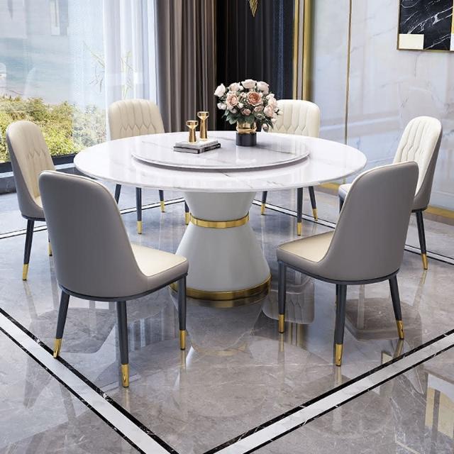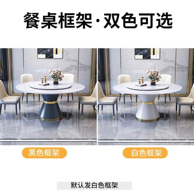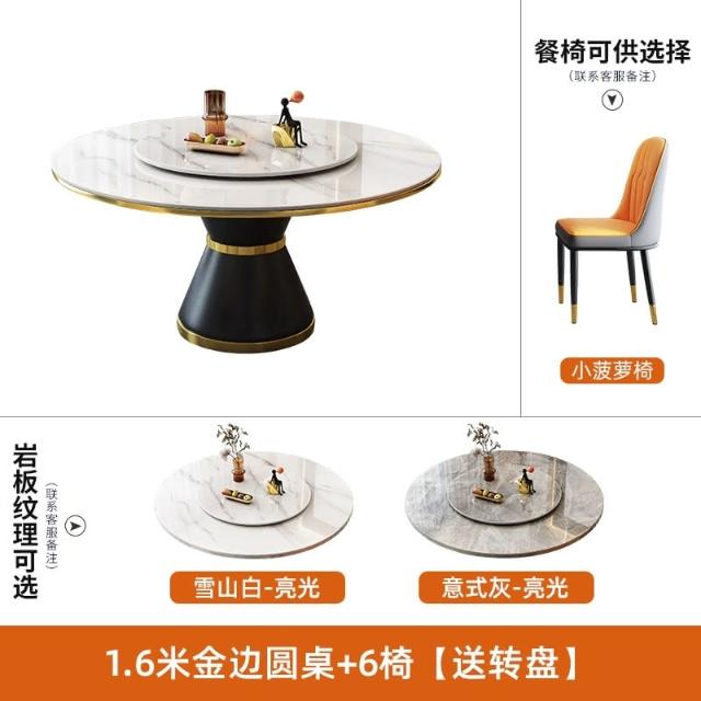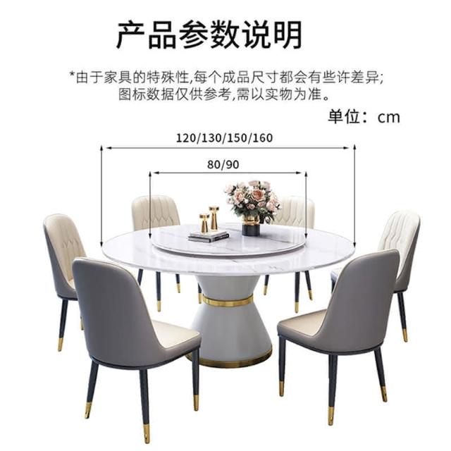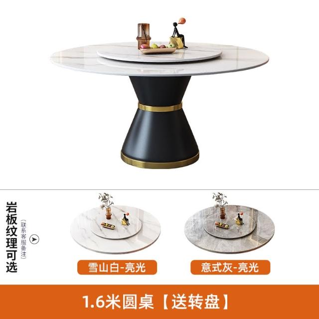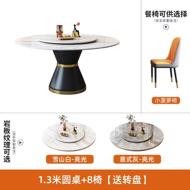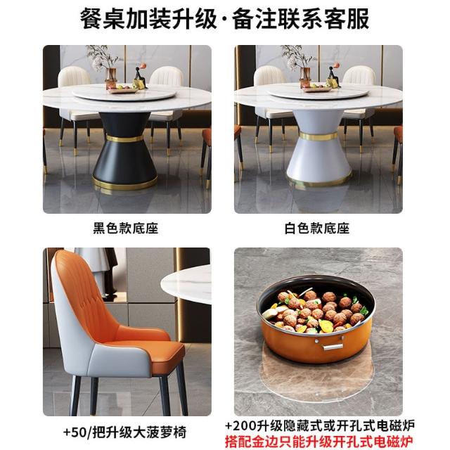 7T亮光岩板圓形餐桌意式輕奢現代簡約家用帶轉盤帶電磁爐餐桌椅組