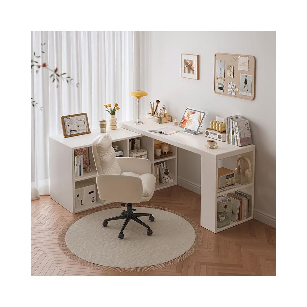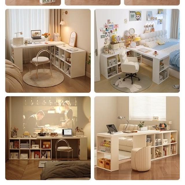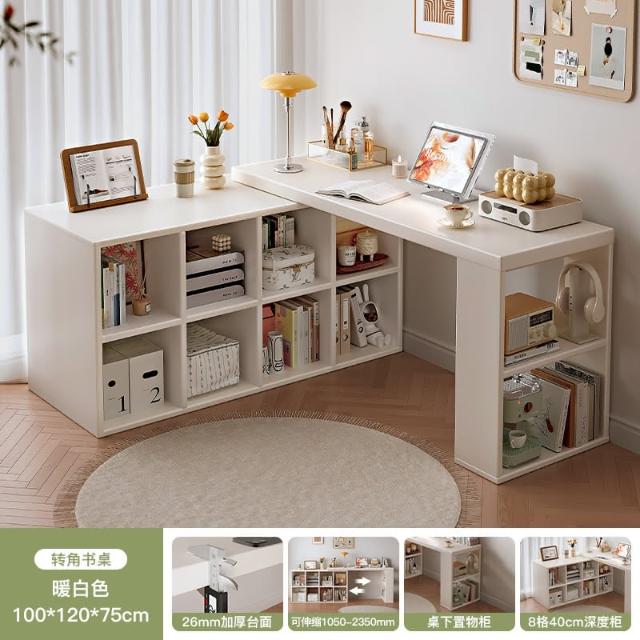 轉角書桌臥室女生電腦桌實木l型書桌書櫃一體拐角辦公桌子工作臺