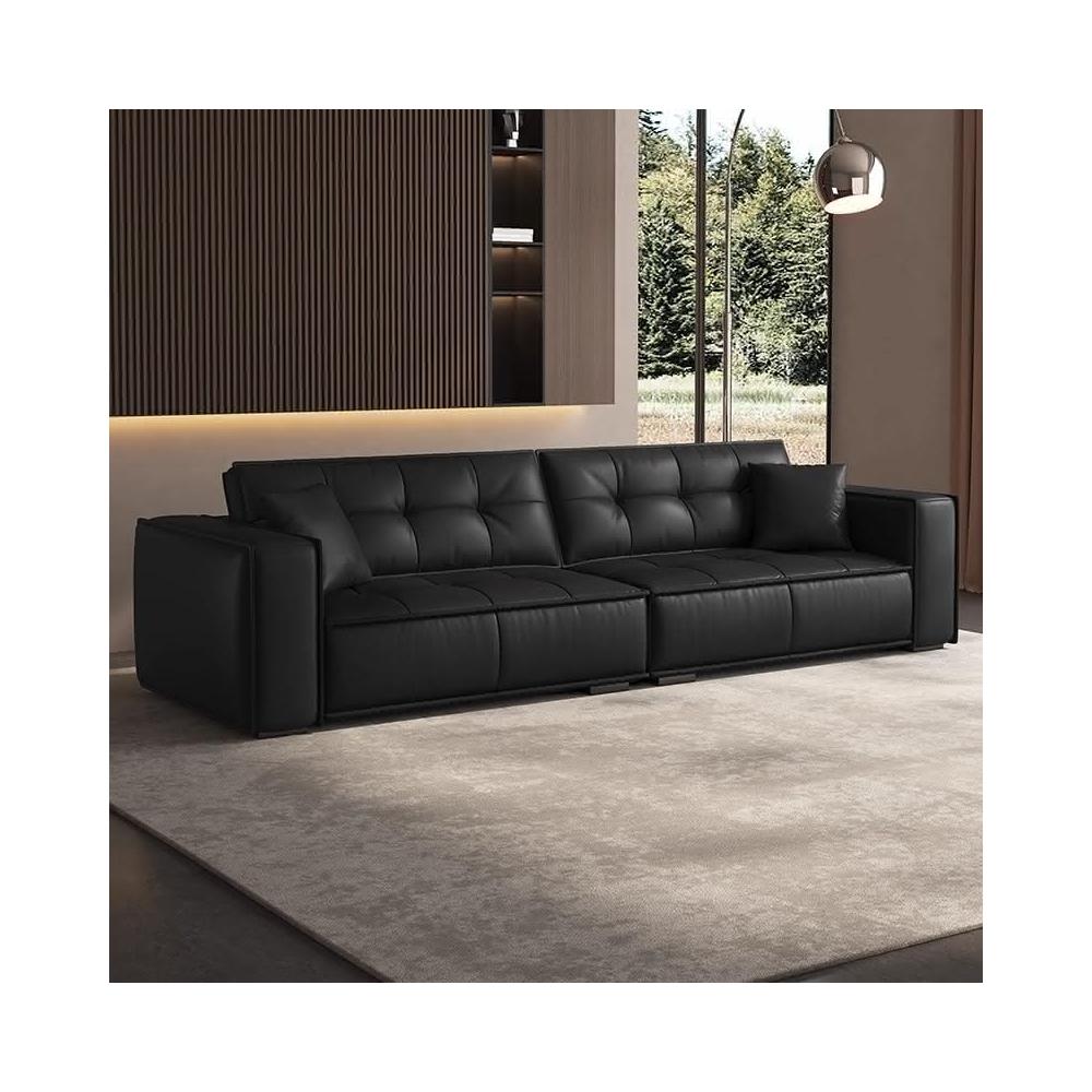 佛山傢俱意式極簡頭層牛皮真皮沙發客廳高級感黑色直排皮藝沙發