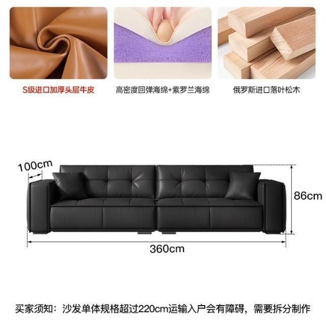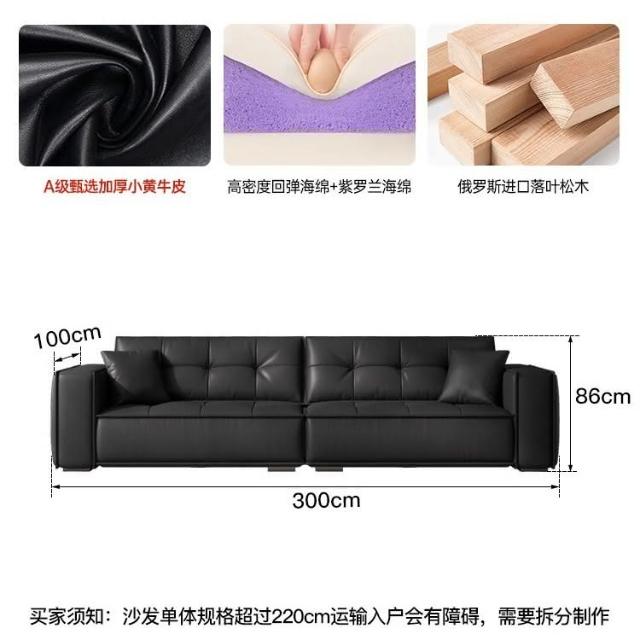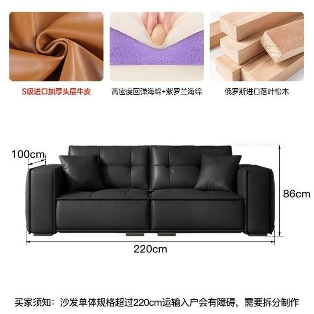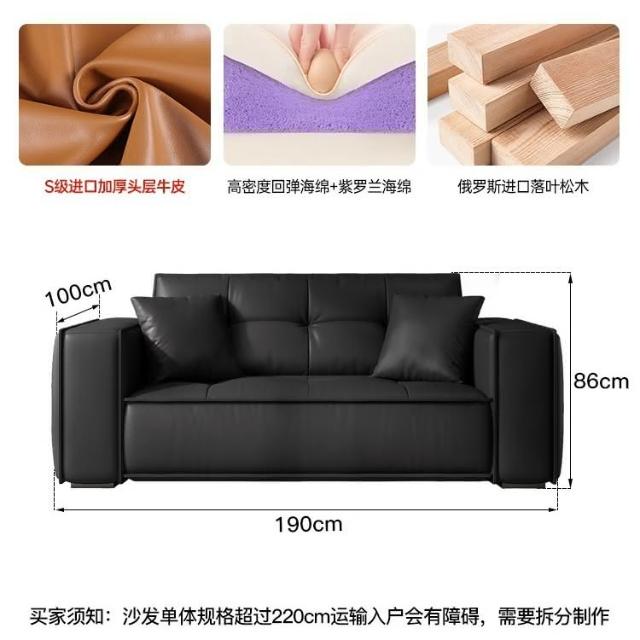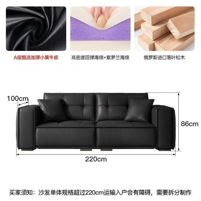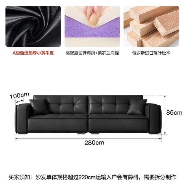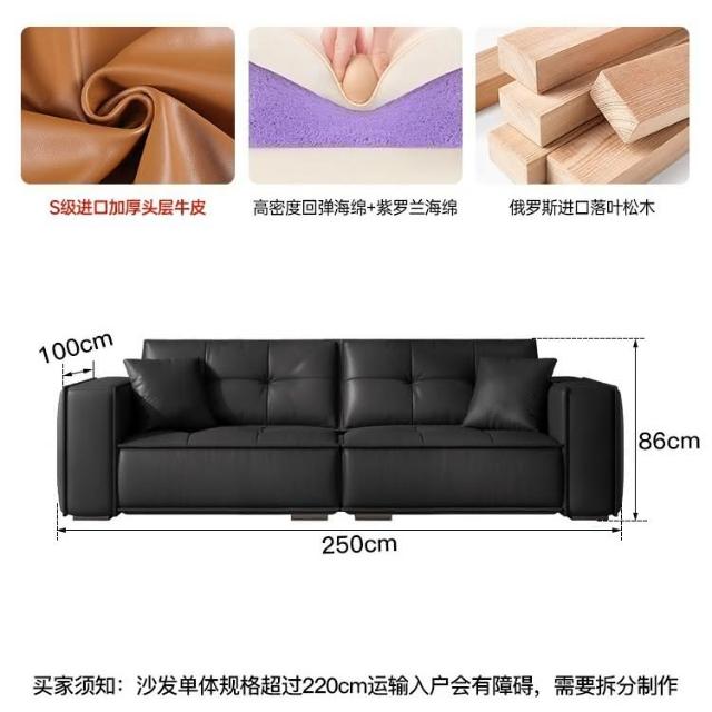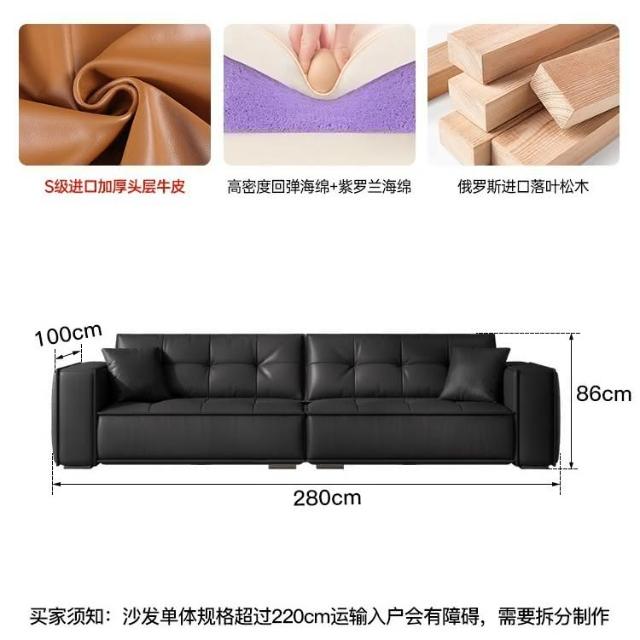 佛山傢俱意式極簡頭層牛皮真皮沙發客廳高級感黑色直排皮藝沙發