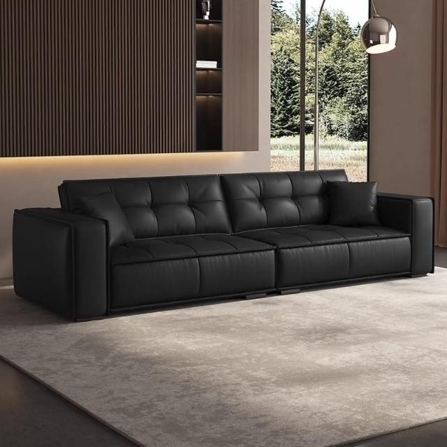 佛山傢俱意式極簡頭層牛皮真皮沙發客廳高級感黑色直排皮藝沙發