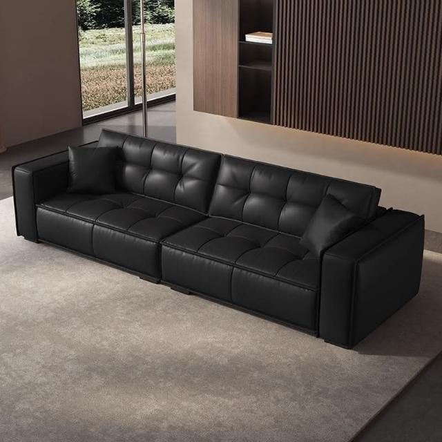 佛山傢俱意式極簡頭層牛皮真皮沙發客廳高級感黑色直排皮藝沙發