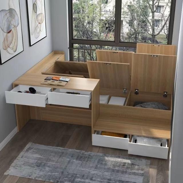 小戶型單人床榻榻米書桌一體儲物床腳踏省空間組合收納兒童床