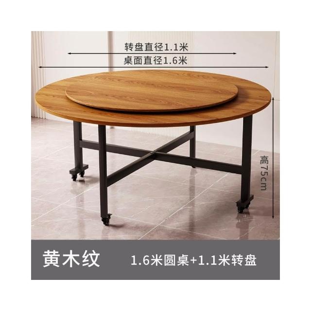 廠家免運 圓桌餐桌家庭聚餐10人飯桌 可伸縮飯桌 酒店圓形帶轉盤組閤桌