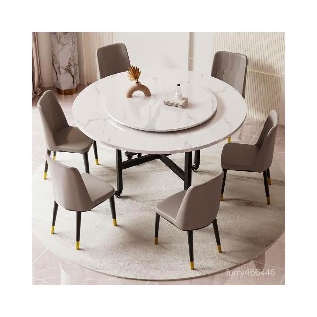 廠家免運 圓桌餐桌家庭聚餐10人飯桌 可伸縮飯桌 酒店圓形帶轉盤組閤桌