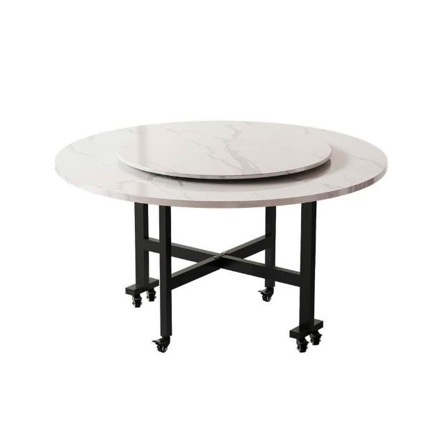 廠家免運 圓桌餐桌家庭聚餐10人飯桌 可伸縮飯桌 酒店圓形帶轉盤組閤桌
