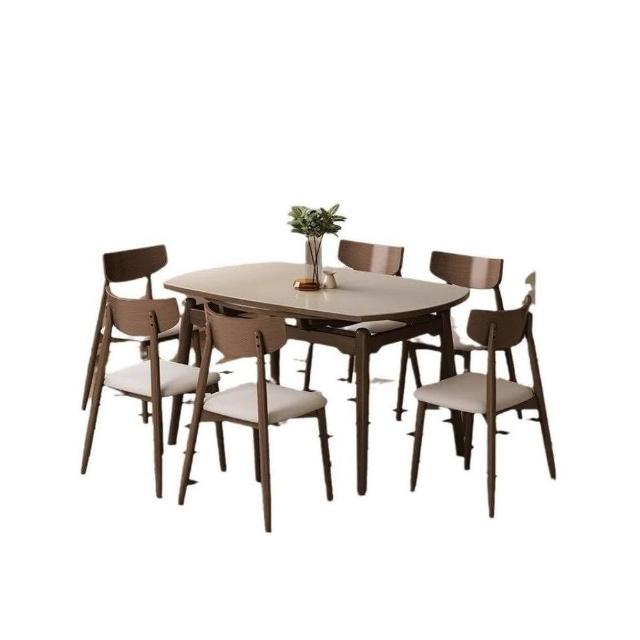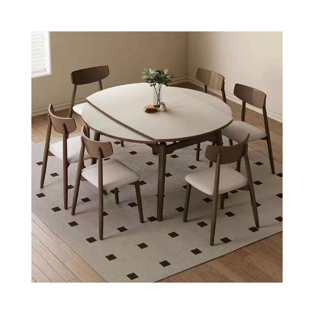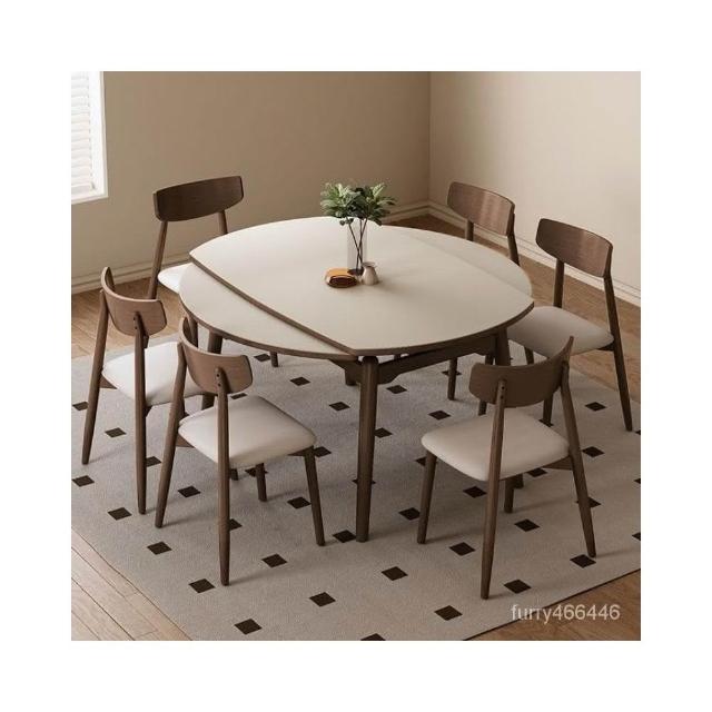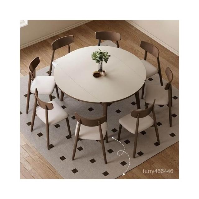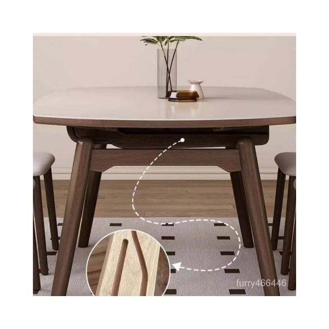 免運 衚桃木色可伸縮方圓兩用實木巖闆餐桌 現代簡約家用小戶型圓桌