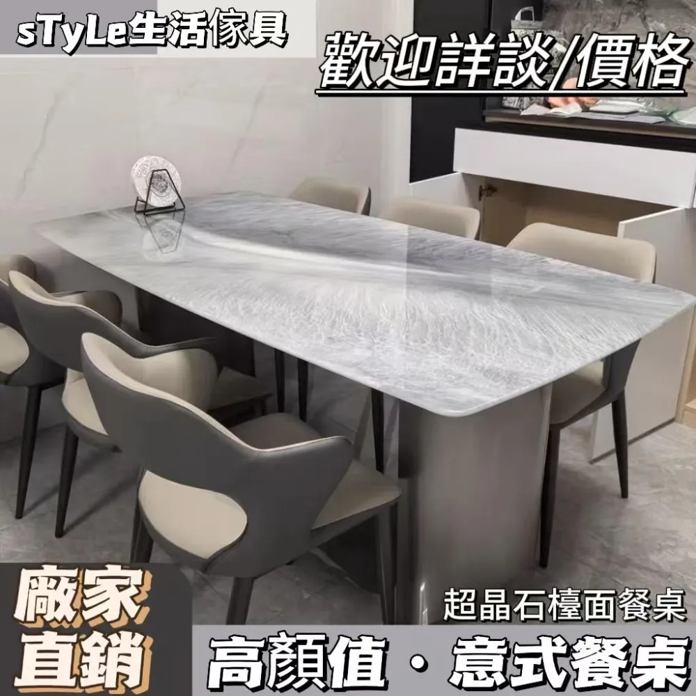 廠家直銷 天然微晶石餐桌意式極簡約長方形超晶石餐桌輕奢大理石餐桌椅組閤