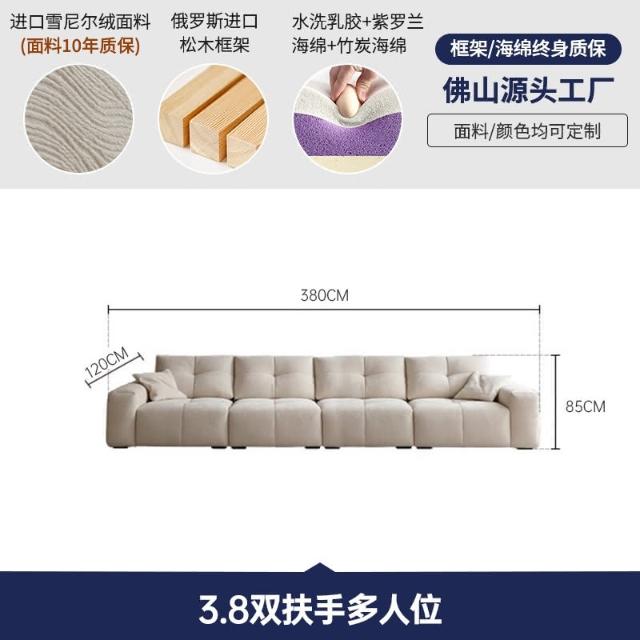 2024新款像素沙發直排客廳大坐深意式極簡雪尼爾布藝沙發高級感