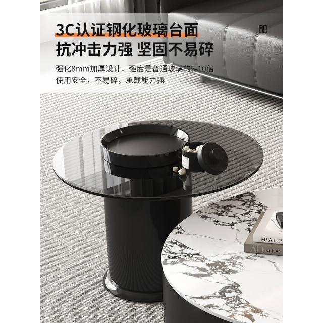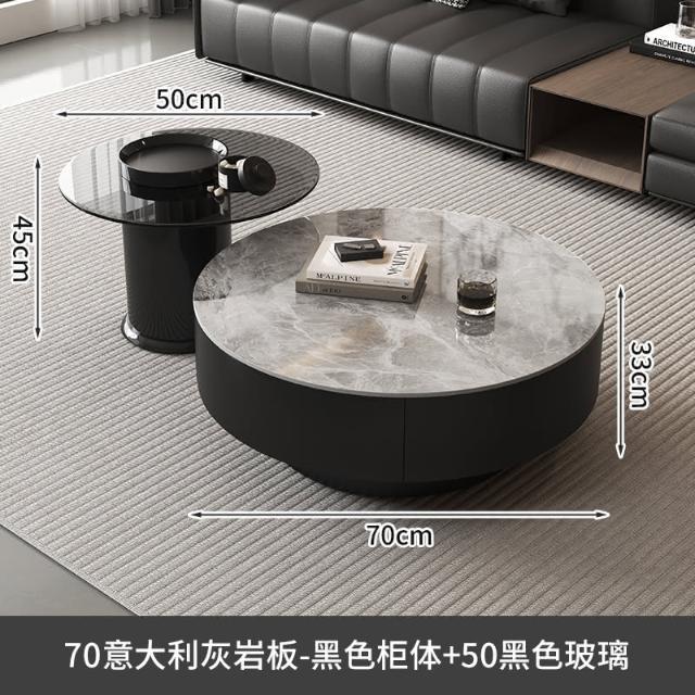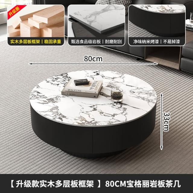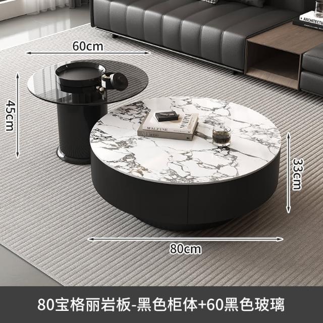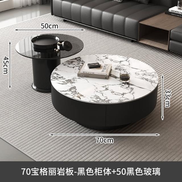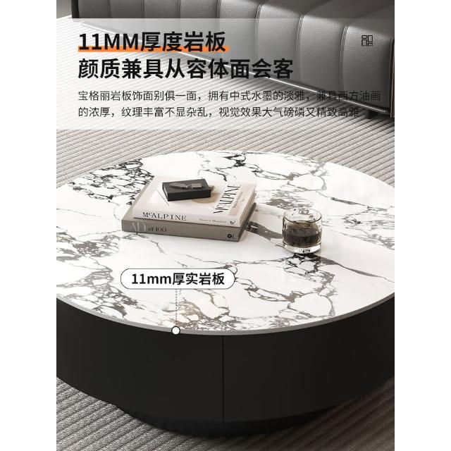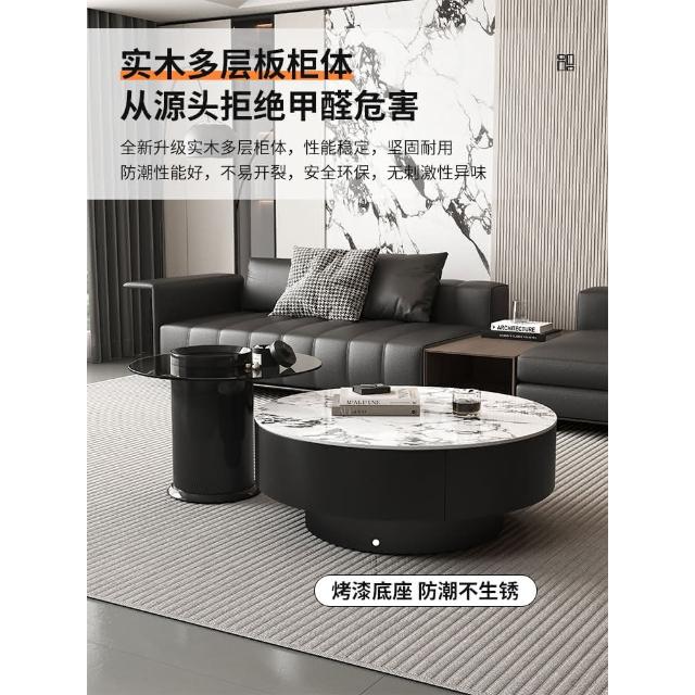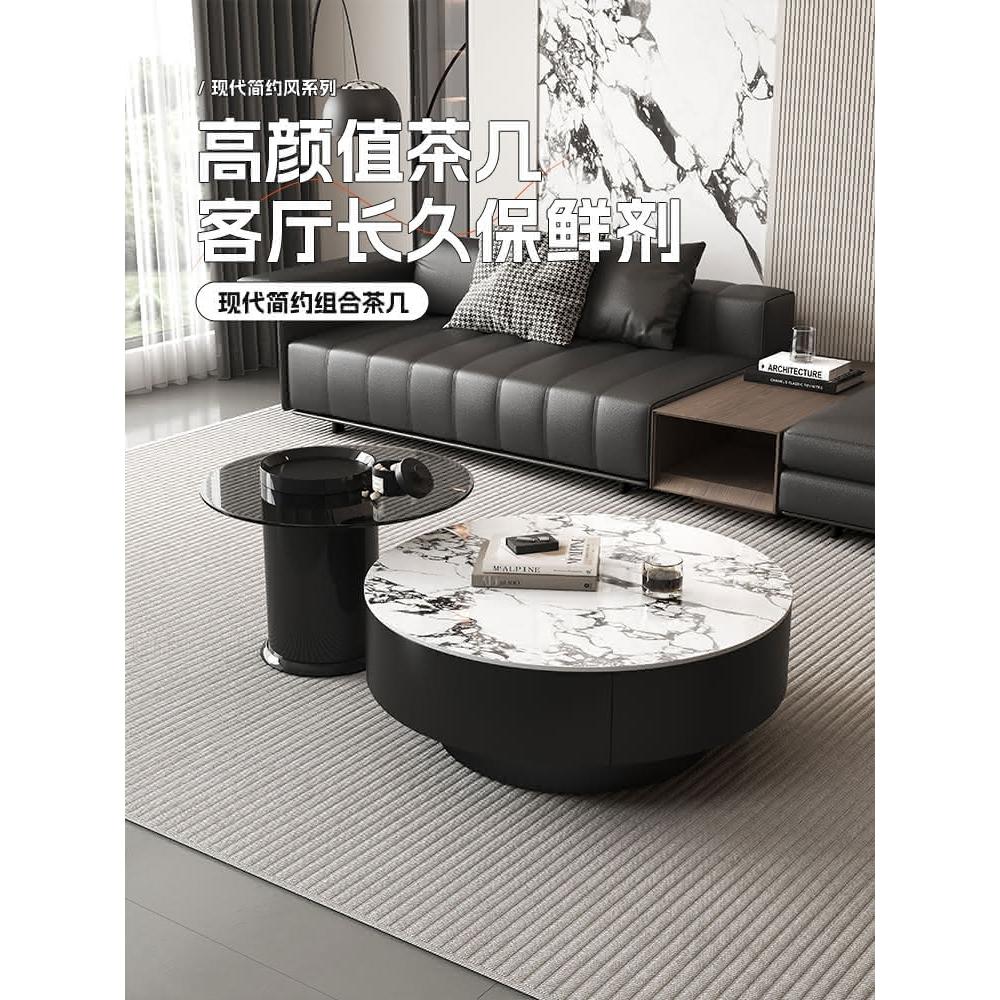 現代簡約岩板實木茶几小戶型客廳家用圓茶几桌輕奢高級感茶几組合