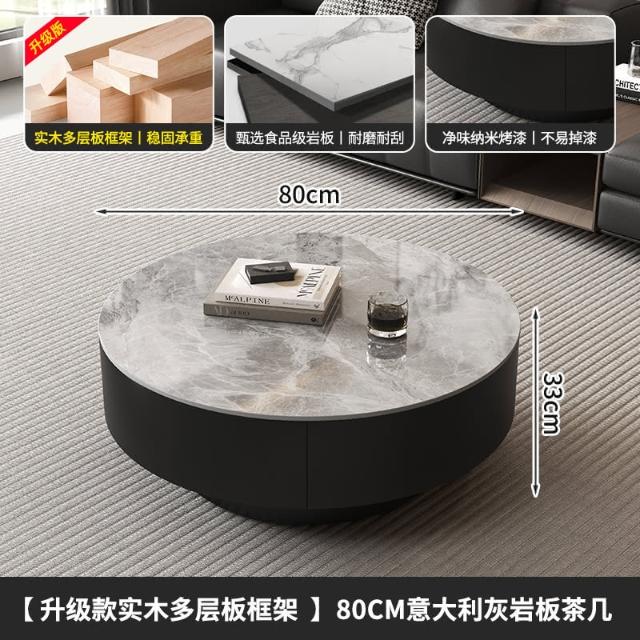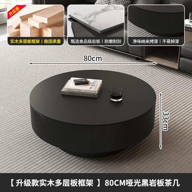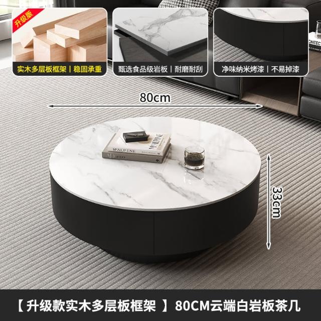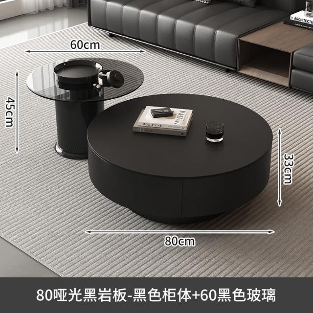 現代簡約岩板實木茶几小戶型客廳家用圓茶几桌輕奢高級感茶几組合