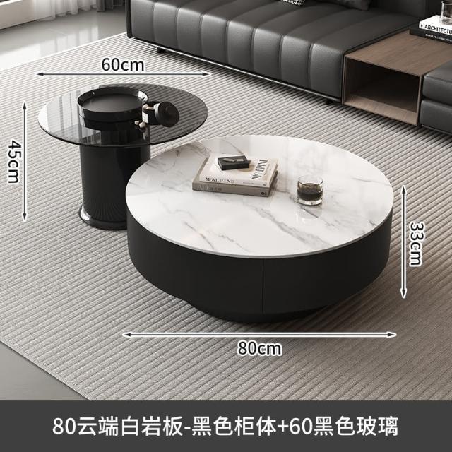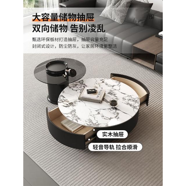現代簡約岩板實木茶几小戶型客廳家用圓茶几桌輕奢高級感茶几組合