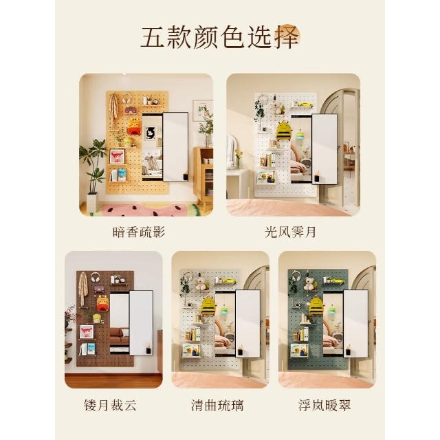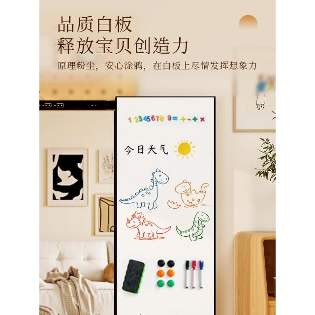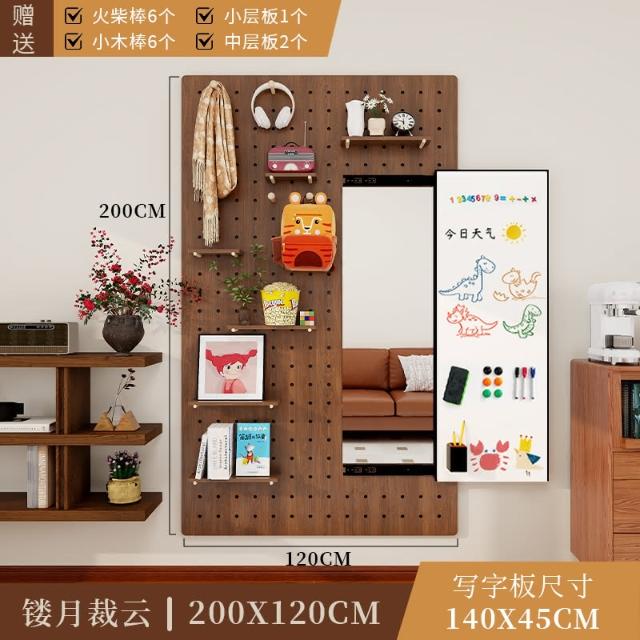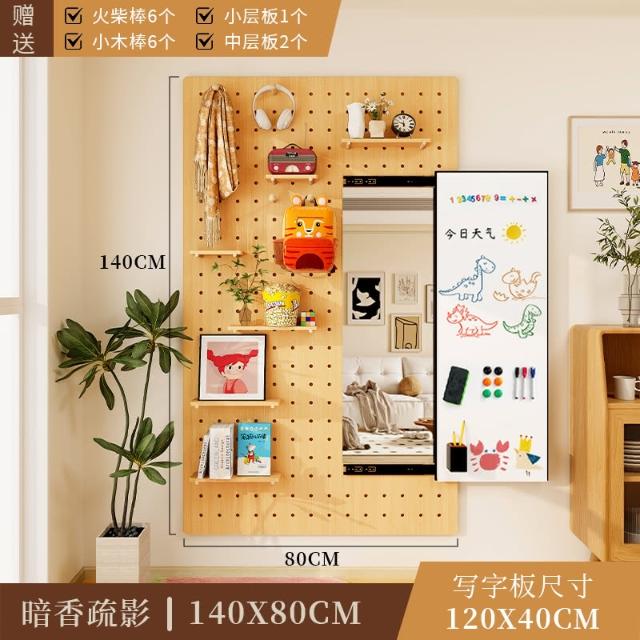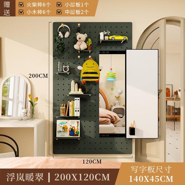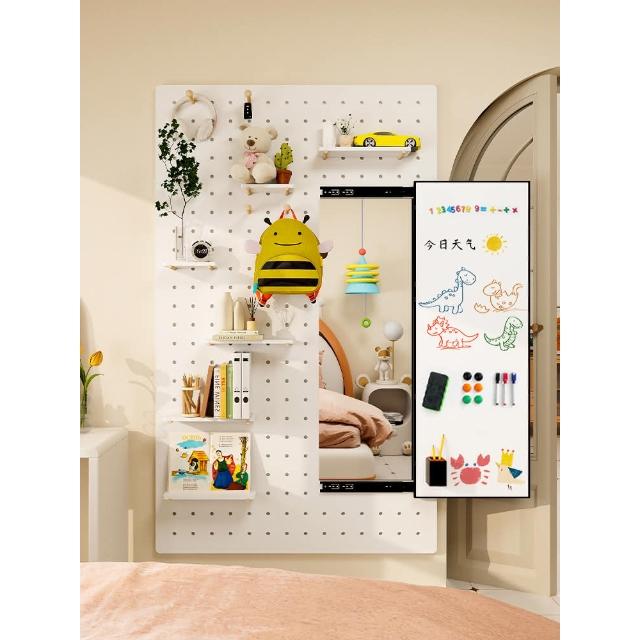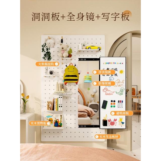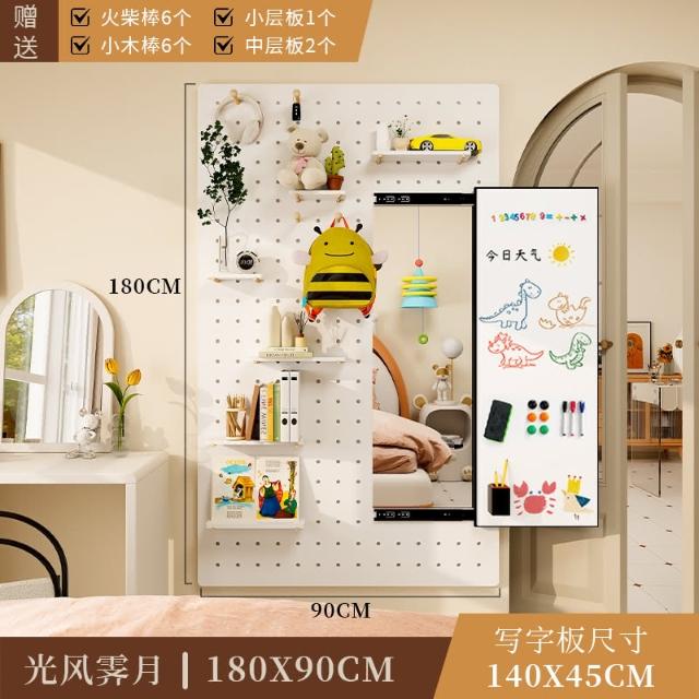 洞洞板穿衣鏡寫字板一體實木置物架磁吸兒童隱藏式可推拉白板畫板
