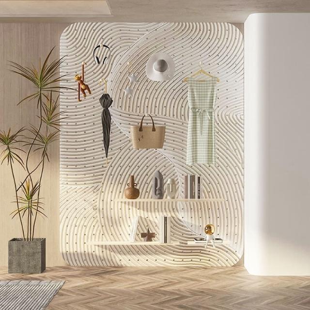 創意實木洞洞板置物架遮擋客廳玄關入戶門牆面掛板裝飾收納架定制