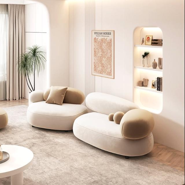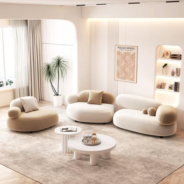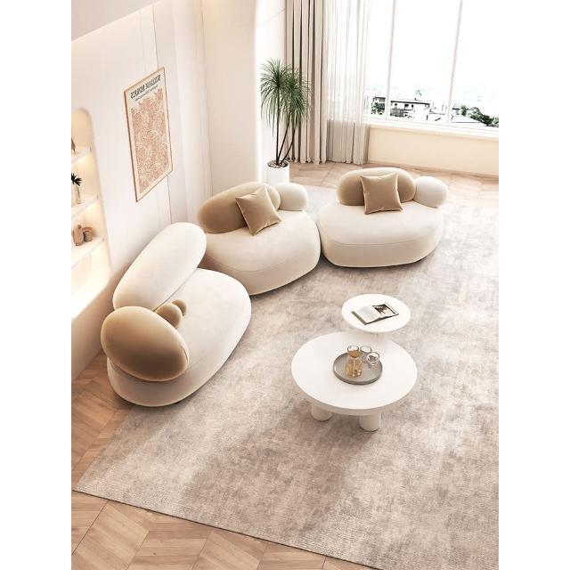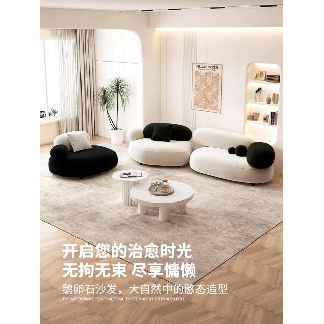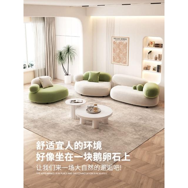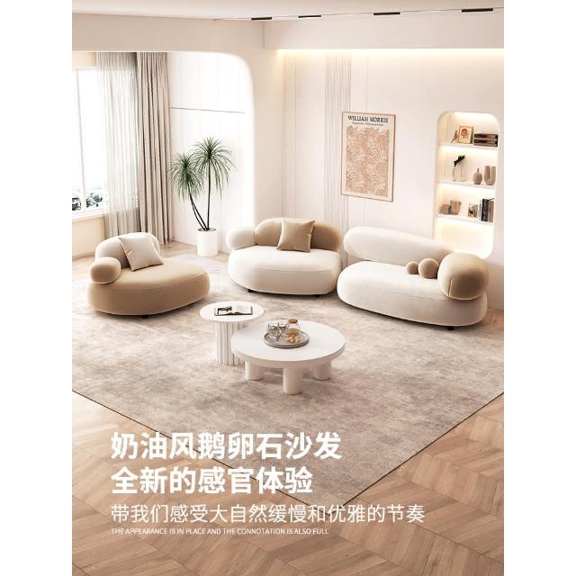 奶油風鵝卵石沙發小戶型客廳設計師網紅美容院休息區接待組合沙發