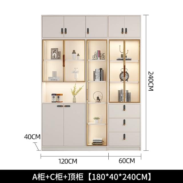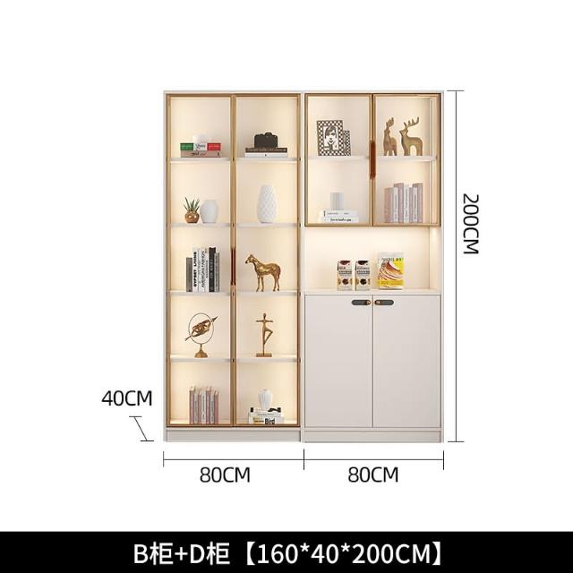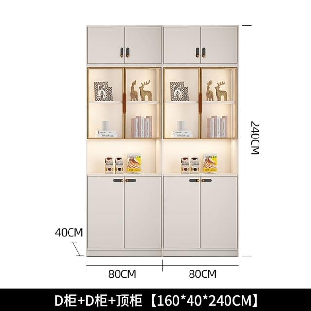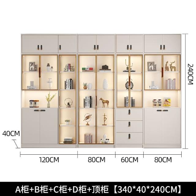 客廳家用書櫃一體整牆到頂防塵玻璃門書櫃輕奢落地靠牆展示櫃定制