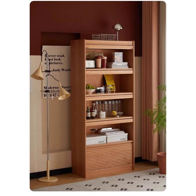 實木翻門書櫃櫻桃木玻璃門手辦展示櫃落地置物櫃日式客廳收納櫃