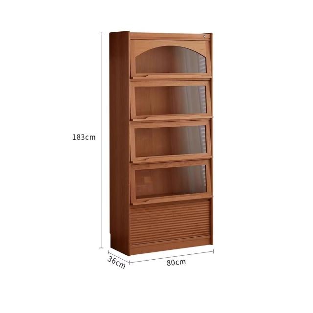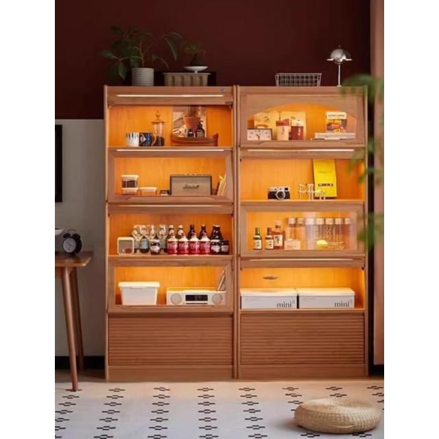 實木翻門書櫃櫻桃木玻璃門手辦展示櫃落地置物櫃日式客廳收納櫃