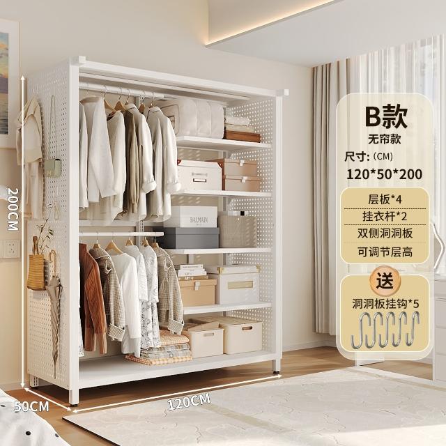 衣櫃簡易組裝全掛式洞洞板臥室家用鋼制金屬衣櫃出租房衣服收納櫃